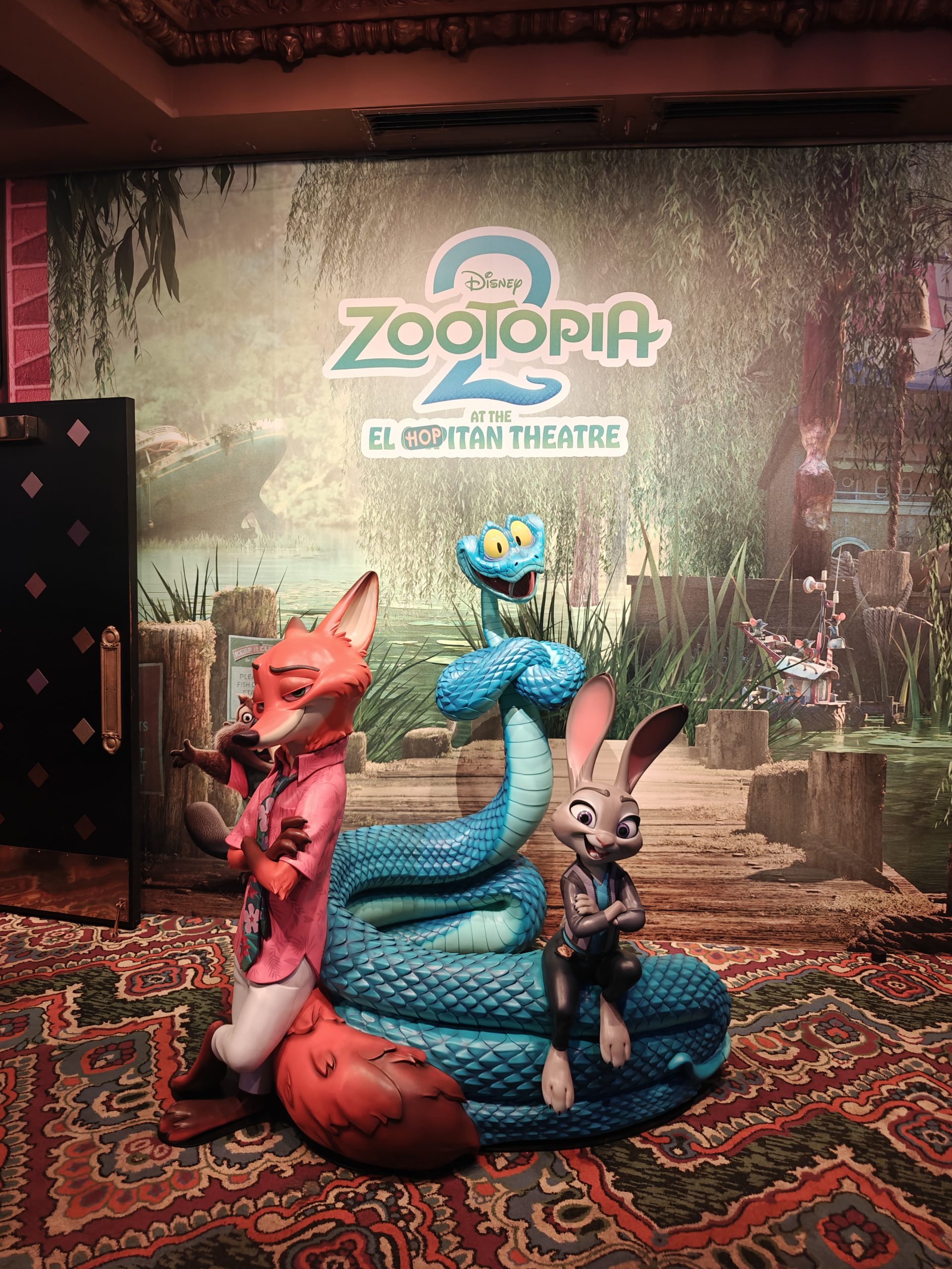 I hope you all have had a good Zootopia 2 Week! I had the privilege of being able to see the movie on opening night at the El Capitan- Sorry, El HOPitan theater in Hollywood. The place was decked out with Zootopia photo ops, decorations, lighting, and even had Nick and Judy on stage to open the show with their own performance to ‘Zoo!’
