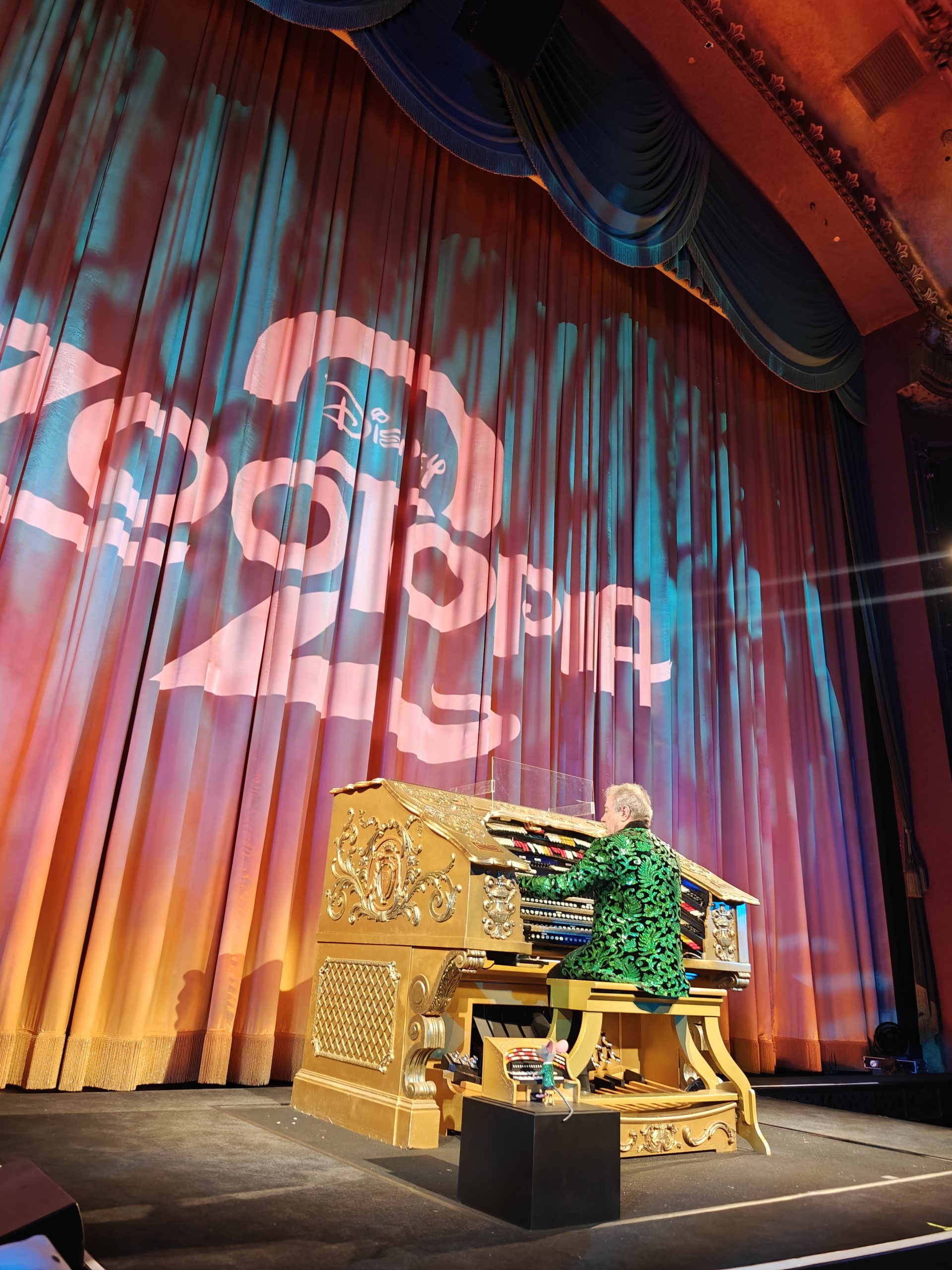 Once inside the theater, we were treated to instrumental classical Disney music being played on the organ, as well as being played by his assistant!