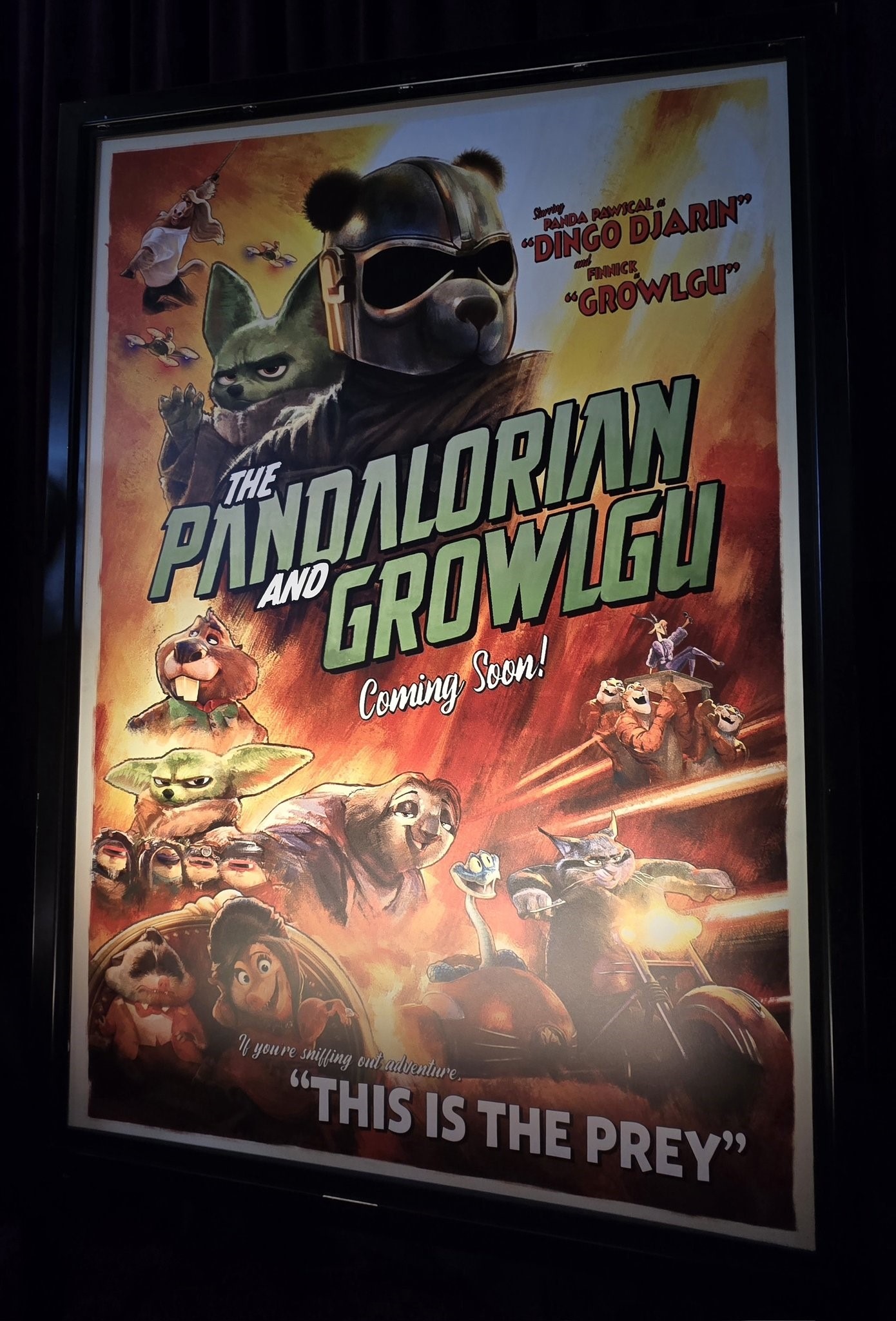 Tonight, at the El Capitan- sorry, the El Hopitan Theater in Los Angeles, Zootopia 2’s world premiere begins! As you can see, they’ve decked out the entrance with all sorts of Zootopia 2 paraphernalia, including Flash in the ticket booth (frankly, it’s amazing the line isn’t longer in the photo) and Zootopified versions of posters for upcoming movies!