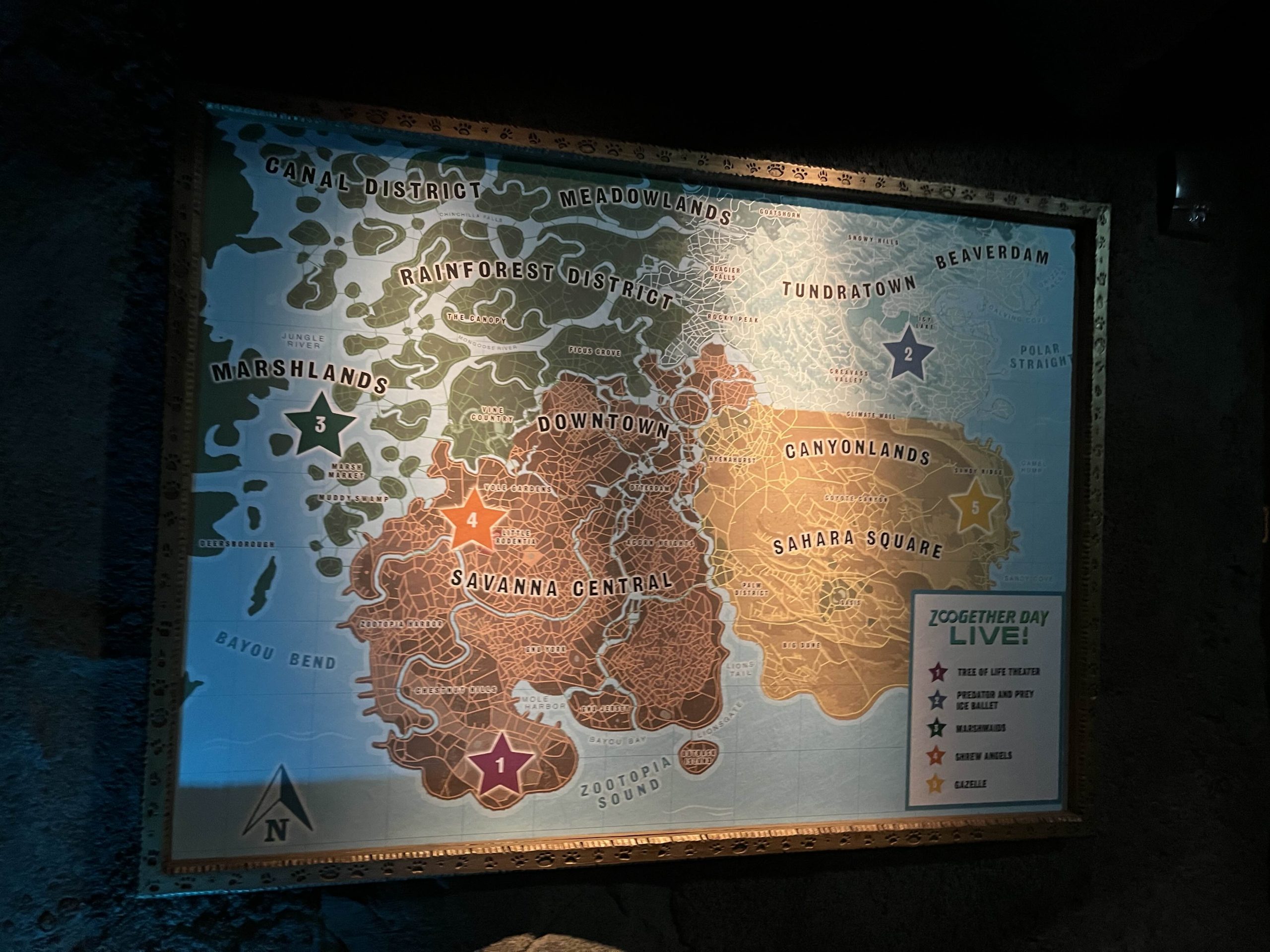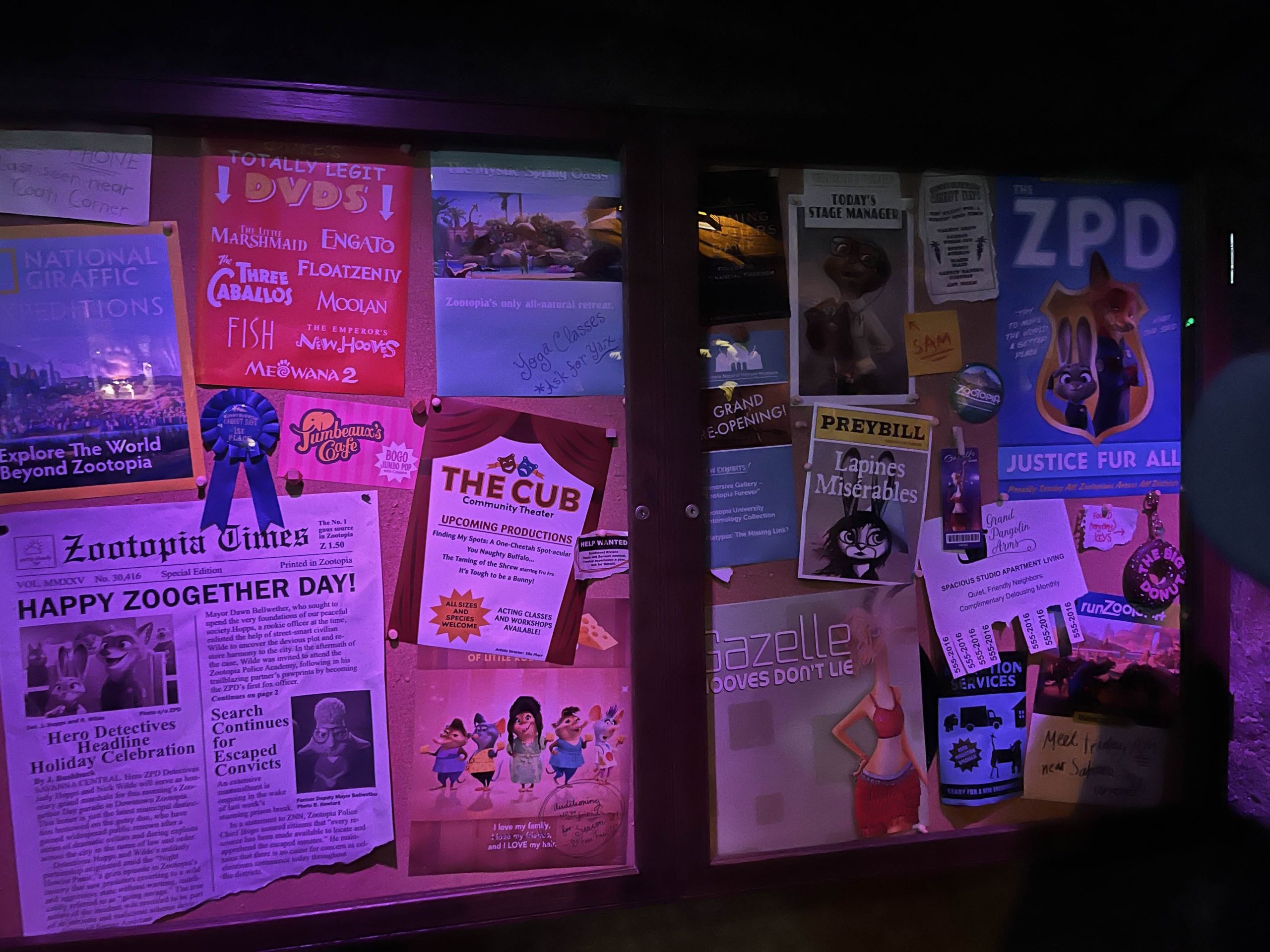 ZBZ also establishes early on within the queue about the attraction’s presence from a story perspective. As Disney often emphasizes its theming in most everything within the Disney Parks, the heaviest theme within Disney’s Animal Kingdom is conservation, which has often been a big topic of debate on whether Zootopia is a proper property to include within the theme park. The conservation theme actually does go “paw-in-paw” with its theme and is established before entering the inside of the Tree of Life (where the show resides), and the mammals of Zootopia came “Zoogether” to form the now iconic city. There are even pictures depicting the very speech a young Judy Hopps once spoke in the opening of the original film. The notion that the conservation of togetherness is reinforced even within the indoor queue, making the message clear every step of the way.
