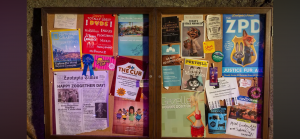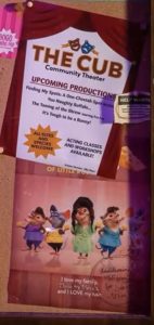 Ads for “The Cub” Community Theater with in-universe animal puns about parodied theater shows in real life like Taming of the Shrew which seems to feature Fru Fru and “It’s Tough to be a Bunny”, a reference to the Disney and Pixar 4D attraction that was in place before ZBZ, “it’s tough to be a bug”. A reference to the in-universe show and Zootopia+ short, “The Real Rodents of Little Rodentia” can be seen underneath and below the theater ad.