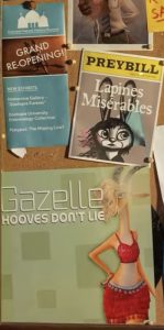 A “Preybill” program, parody of Playbill, advertising “Lapines Misérables”. A pun on Les Misérables. And a poster featuring Gazelle referencing Shakira’s (Gazelle’s voice actress) Hips don’t Lie with “Hooves don’t Lie”.