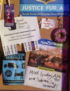In the bottom right corner of the message board is a ticket for the concert Gazelle held at the end of the first Zootopia film and as seen from the Zootopia+ short, “Dinner Rush”. Judy’s small shoebox apartment, Grand Pangolin Arms, offering room and board. 2016 is part of the number to call for the apartment complex which is a reference to the year the first Zootopia film released. Below is an ad for moving services or “migration” service as it’s called, lost keys with a “The Big Donut” keychain referencing the donut shop found in Little Rodentia. And finally a reference to runDisney with “runZootopia”, a Disney hosted and themed running marathon event held on Disney Park property.