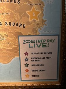 At the far end of the room is a map of Zootopia where it shows we’re all the performances take place and even go as far to state that they have their own Tree of Life within the city of Zootopia. The very one the attraction takes place, in fact.