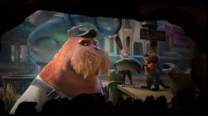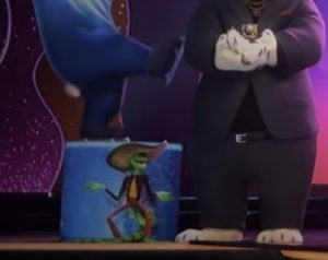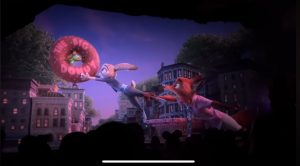 So sheep are sabotaging the Zoogether Day celebrations and they’re on their way to sabotage Gazelle’s concert where we find Chief Bogo who is dancing along to Try Everything. After the sheep move past him with Nick and Judy in pursuit, he asks “What in the wild animal kingdom is going on?” which could be a reference to Disney’s Animal Kingdom park or even just as the expression, “animal kingdom” but it honestly works both ways here.
