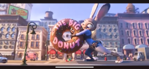 Judy and Nick save Fru Fru using “The Big Donut” sign to catch the haywire drone. Using the very thing that almost crushed Fru Fru in the first film.