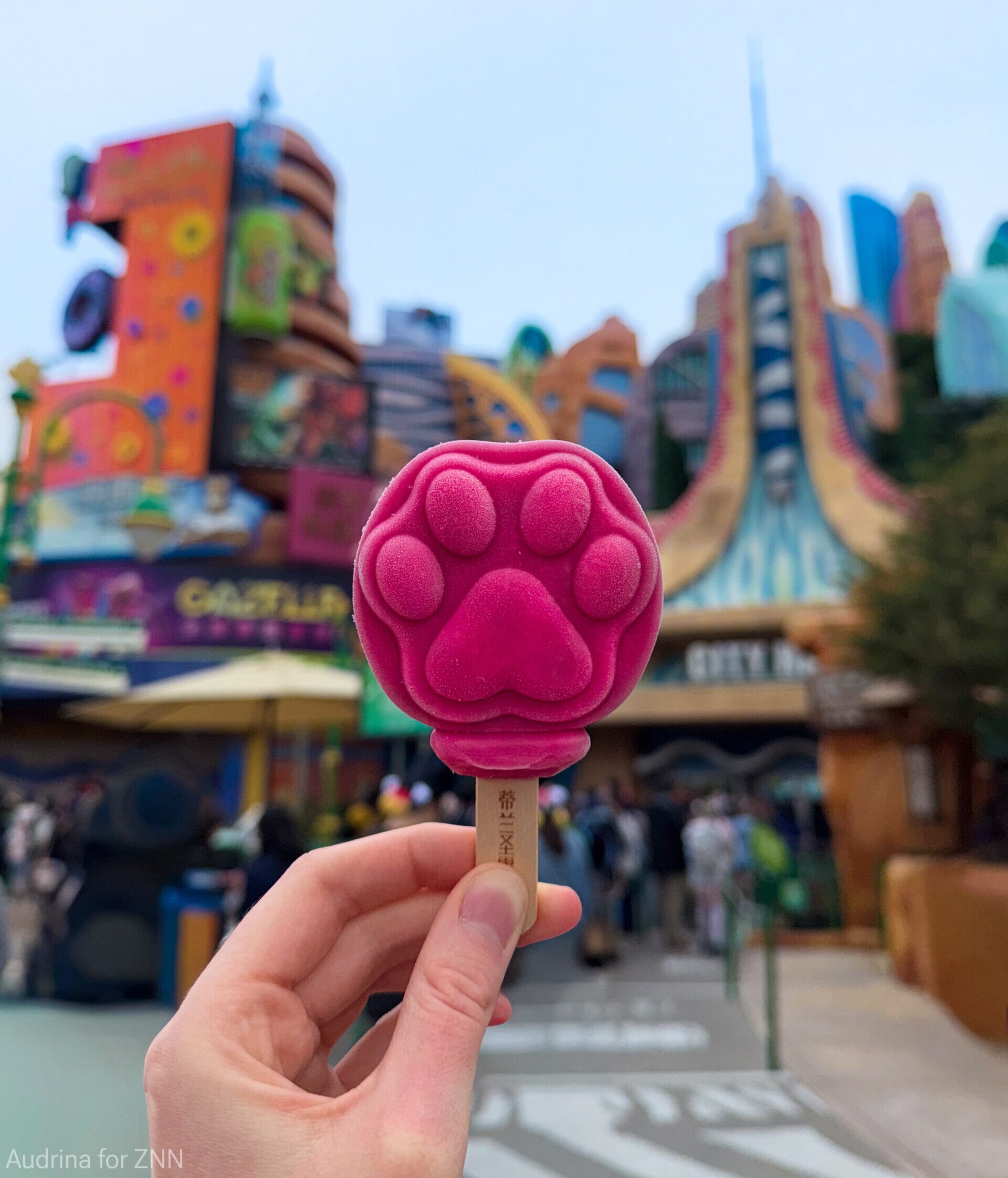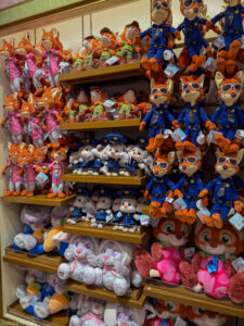 Although “Hot Pursuit” is Zootopia land’s main attraction, the land has a lot more to offer, notably “Fashions by FruFru” and its overwhelming amount of Zootopia merch from floor to ceiling (which isn’t as expensive as some would think due to eBay resellers often doubling the original price of certain items). There is also Jumbeaux’s Café, where you’ll find treats that’ll take you right back to the first movie, such as the iconic “Jumpo Pop” (a chocolate rice crispy bar), Little Rodentia’s “The Big Donut” (a big chocolate donut, obviously), Nick and Finnick’s famous “Pawpsicles” (hawthorn berry-flavored popsicles) and so much more – you can check the whole menu at the bottom of this page [Jumbeaux’s Cafe | Dining | Shanghai Disney Resort]. However, if I have to be completely honest, I believe the food tends to look a little better than it tastes (except for the Jumbo Pop, which I loved), but hey, they’re perfect for some nice pictures!
